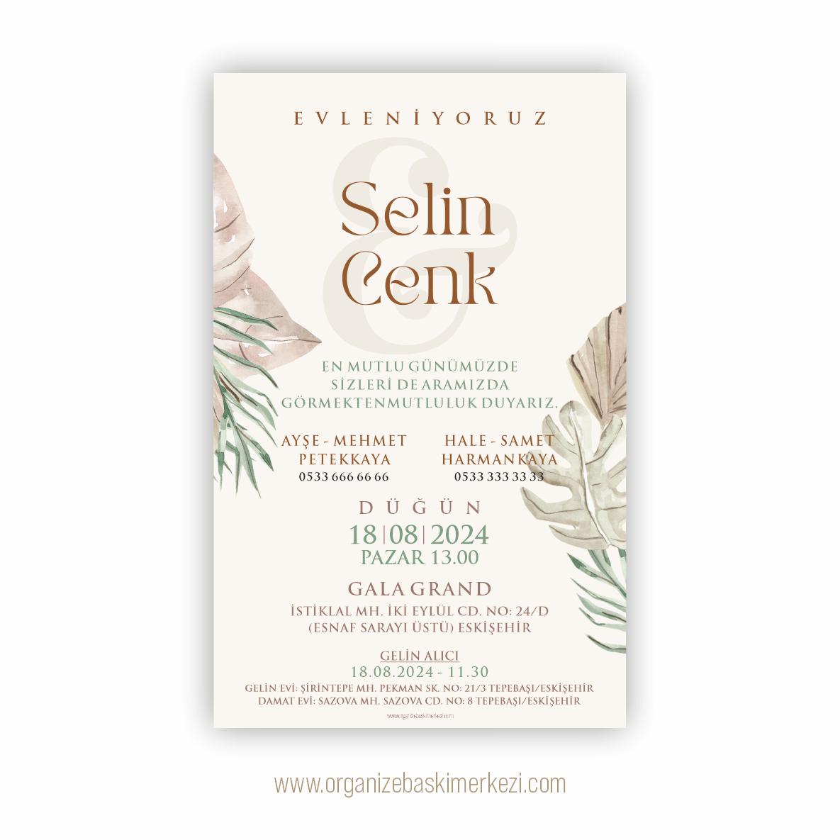 *Davetiye Baskı Özelliği: Tek Yön Renkli ve Selefonlu