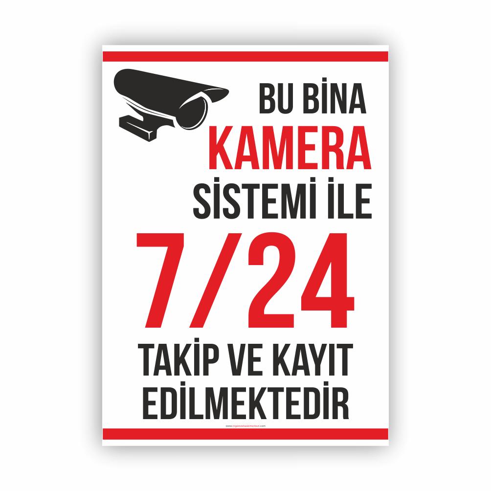 Bina güvenliği ve kamera takip sistemi ikazı için kullanılan "7/24 Kamera Takip Sistemi" yazıları, folyoya dijital baskı olarak alınır ve foreks (dekota / sıkılaştırılmış plastik/köpük) levha üzerine uygulanır.