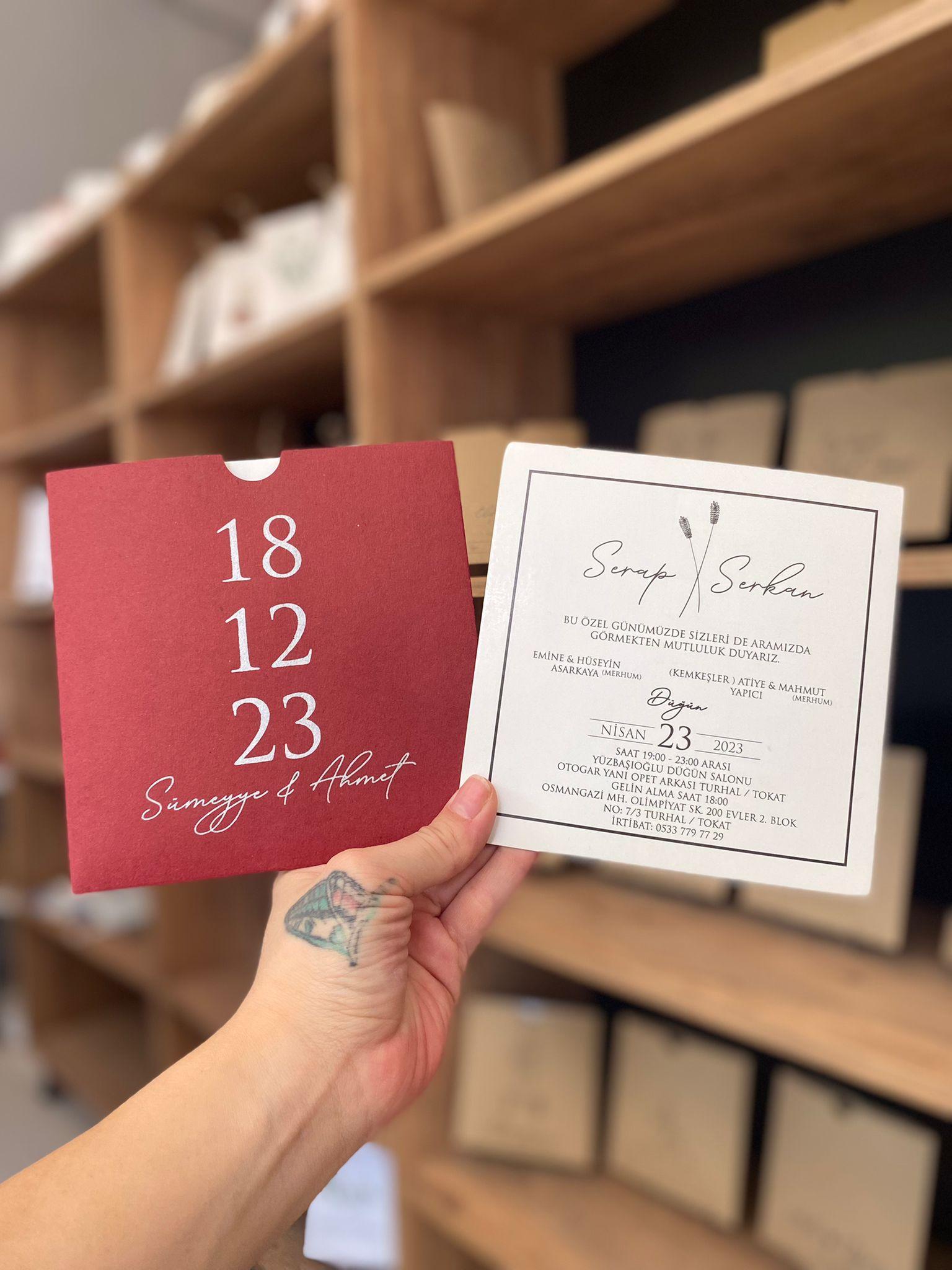 Davetiyenizi sipariş etmek için iş yerimize gelerek birebir görüşebilir ya da WhatsApp üzerinden sipariş oluşturabilirsiniz. Türkiye’nin her yerine kargo ile gönderim sağlıyoruz. *Kargo ücretleri hakkında bilgi almak için bizimle iletişime geçmenizi rica ederiz.