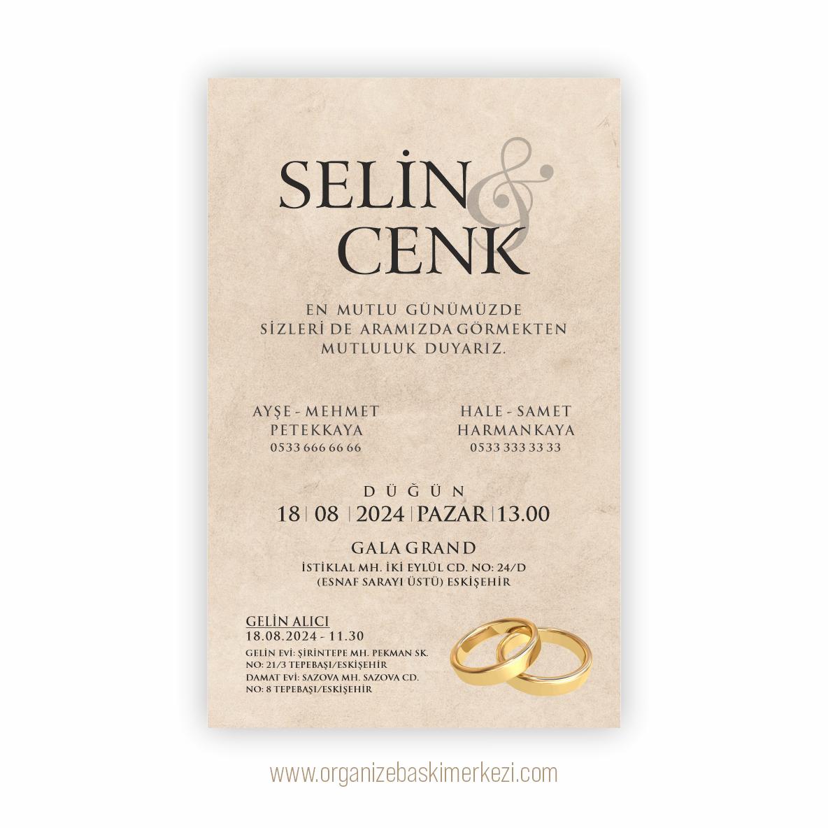 *Davetiye Baskı Özelliği: Tek Yön Renkli ve Selefonlu