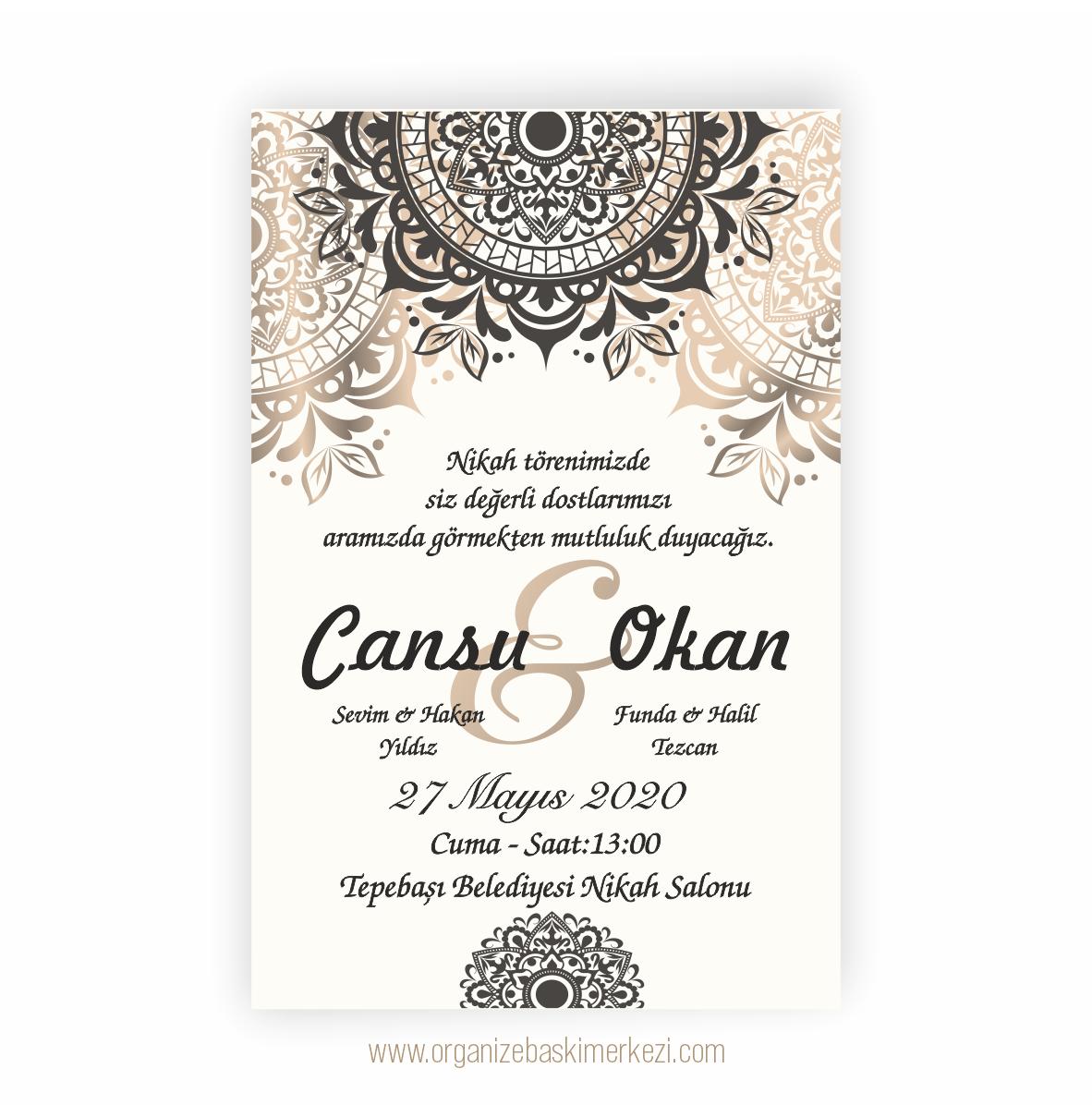Krem Motifli Düğün Davetiyesi- Eskişehir Davetiye