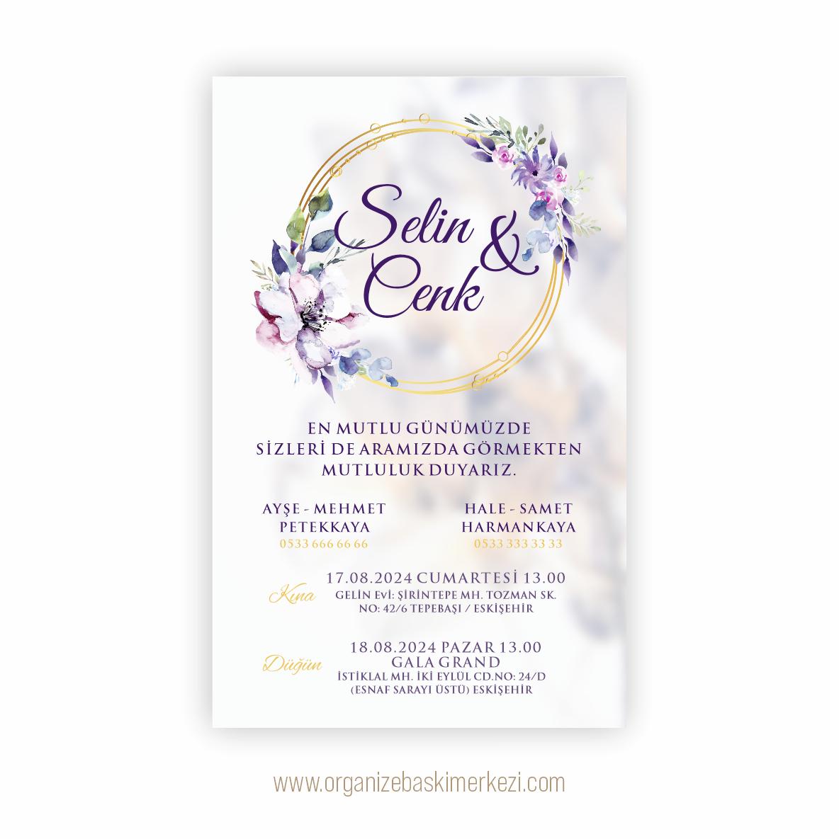 *Davetiye Baskı Özelliği: Tek Yön Renkli ve Selefonlu