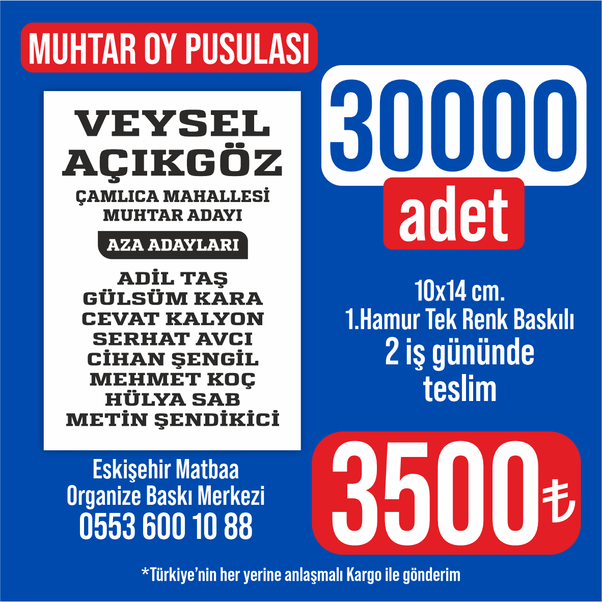 -31 Mart 2024 Yerel seçimlerinde muhtar adaylarının olmazsa olmazı oy pusulası, en uygun fiyatlarla Organize Baskı Merkezi'nde...