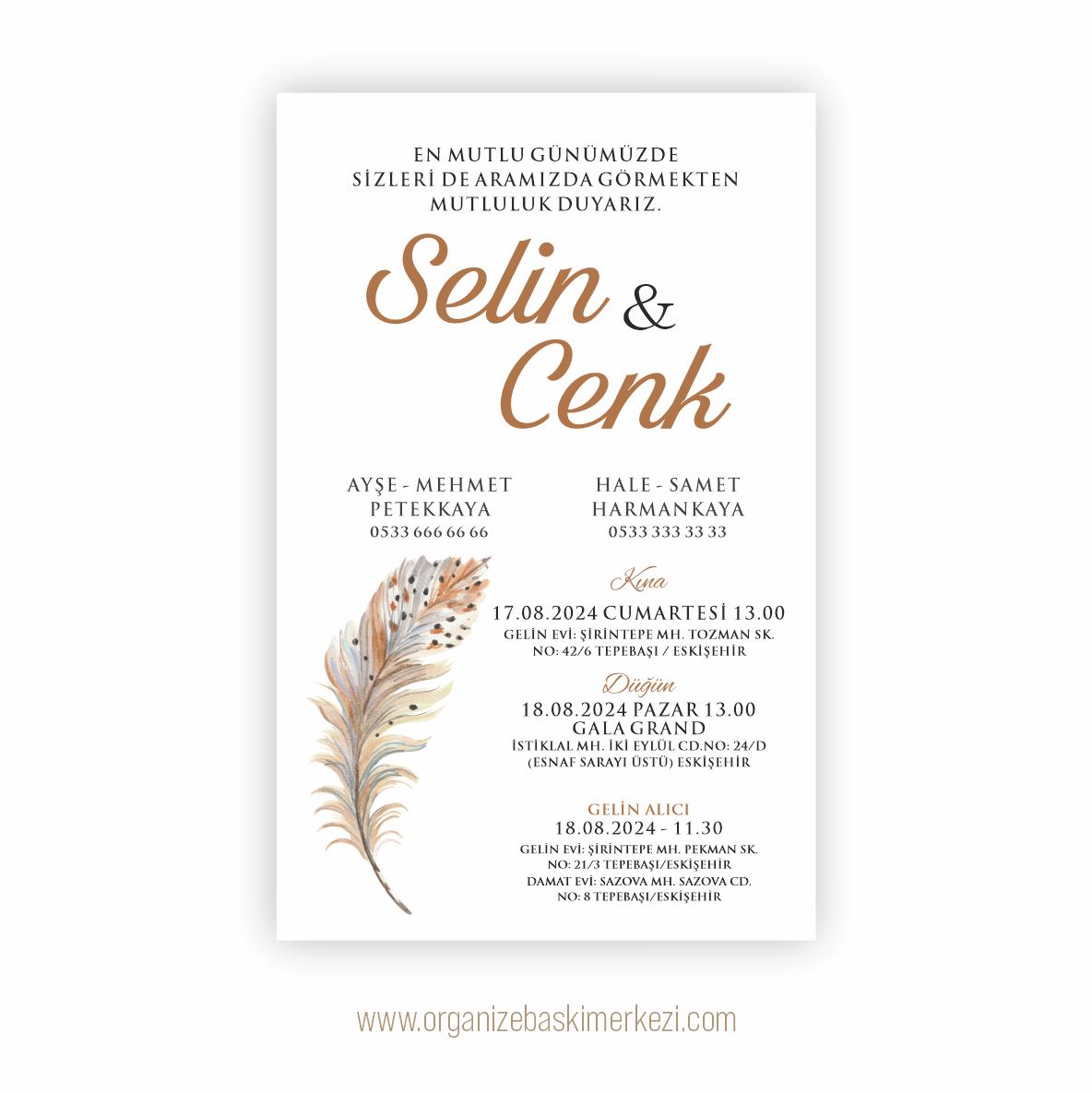 *Davetiye Baskı Özelliği: Tek Yön Renkli ve Selefonlu