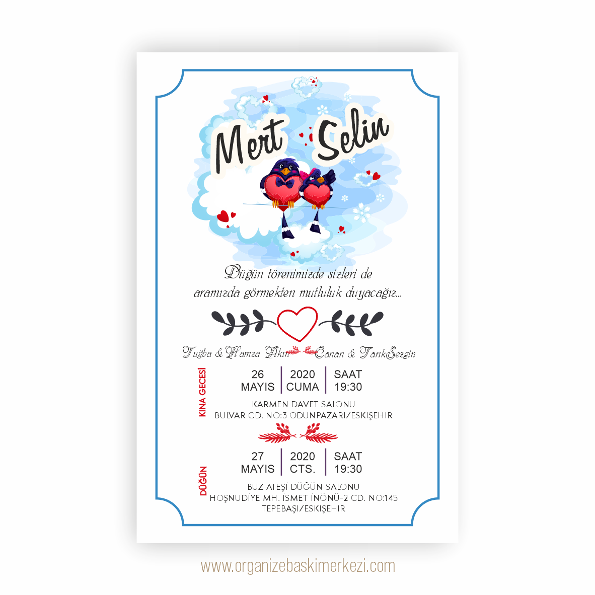 Sevgili Kuşlar Düğün Davetiyesi - Eskişehir Davetiye