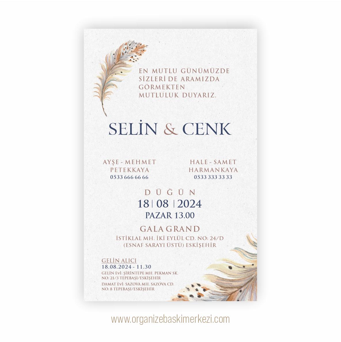 *Davetiye Baskı Özelliği: Tek Yön Renkli ve Selefonlu
