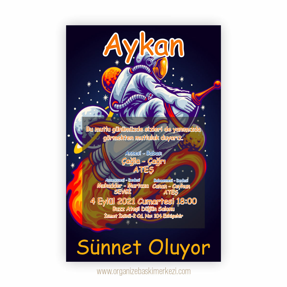 Uçan Astronot Sünnet Davetiyesi- Eskişehir Davetiye