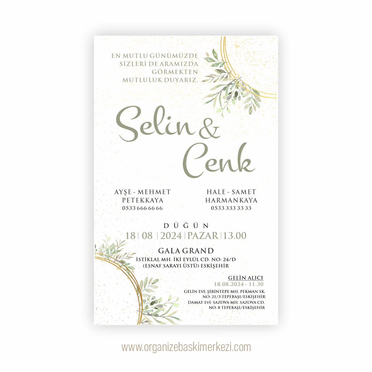 *Davetiye Baskı Özelliği: Tek Yön Renkli ve Selefonlu